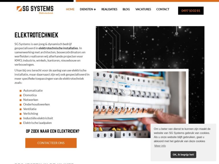 Op zoek naar een elektricien in Aalter? SG Systems is een jong & dynamisch bedrijf gespecialiseerd in elektrotechnische installaties, elektriciteit, automatisatie, domotica, netwerken, ventilatie en videofonie.