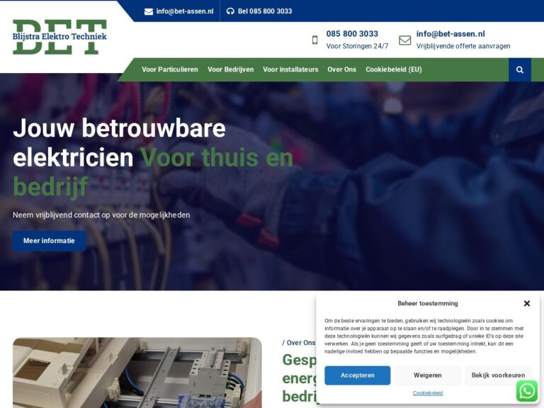 Bekijk het overzicht van de top 10 beste elektriciens in Assen. Deze lijst is handmatig samengesteld op basis van reviews, betrouwbaarheid en ervaring. Zo vind je in onze directory meteen een elektricien in Assen voor jouw klus. Of ontvang gratis offertes en kies zelf de beste elektricien voor de laagste prijs.