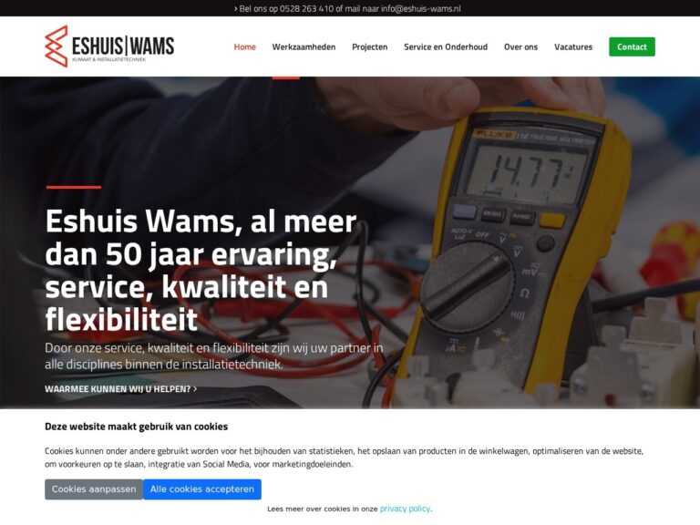 Eshuis-Wams is een elektricien in Hoogeveen en voert al uw kleine en grote en installatiewerken uit. Met al meer dan 50 jaar ervaring is Eshuis-Wams een betrouwbare partner op het gebied van elektratechniek.