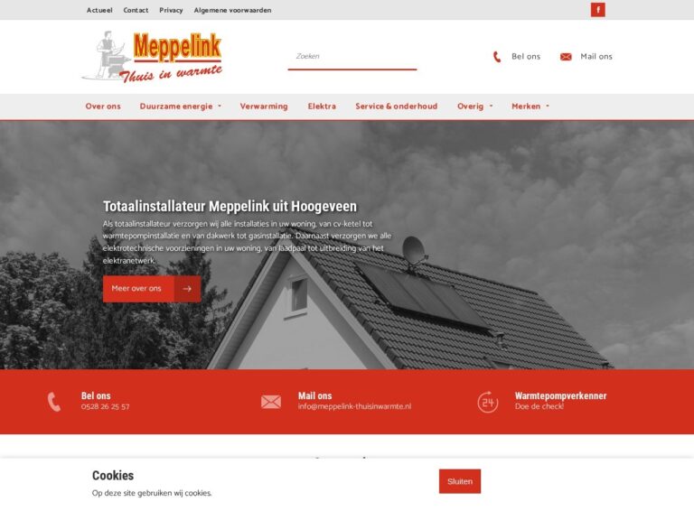 Meppelink uit Hoogeveen installeert duurzame installaties, zoals warmtepompen en zonneboilers en cv-ketels, kachels, haarden, ventilatie, elektra, dakwerk, loodgieterswerk, water- en gasinstallaties.