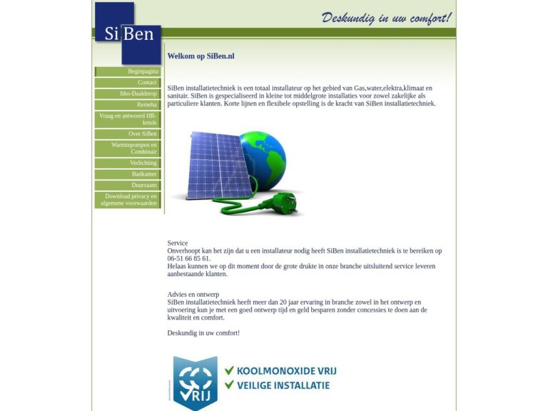 SiBen Installatietechniek is een totaal installateur op het gebied van gas, water, elektra, klimaat en sanitair. SiBen is gevestigd in Hoogeveen en gespecialiseerd in kleine tot middelgrote installaties.