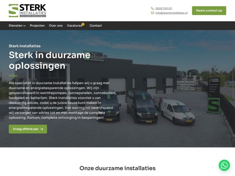 Sterk Installaties uit Hoogeveen is gespecialiseerd in warmtepompen, zonnepanelen, zonneboilers en laadpalen. Ze kunnen ook andere installatiewerkzaamheden doen, zoals het plaatsen van led-verlichting.