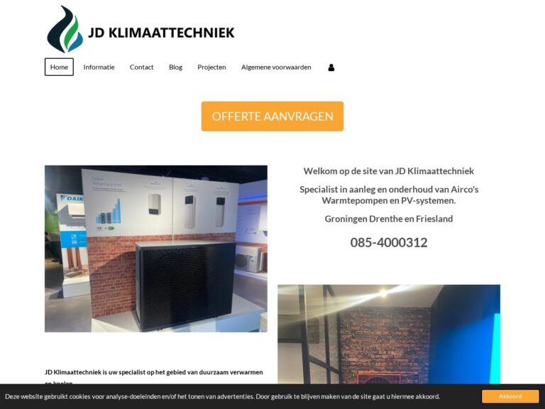 JD Klimaattechniek uit Zuidbroek is uw specialist op het gebied van duurzaam verwarmen en koelen. Ze voorzien in installatie, reparatie en onderhoudt van airco en warmtepomp voor zakelijke en particuliere markt. STEK gecertificeerd.